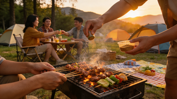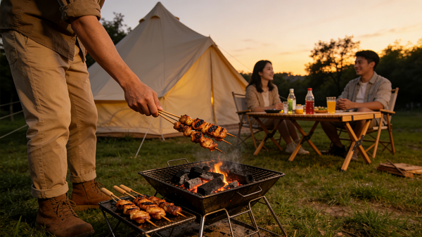 ▲露营炭烤▲